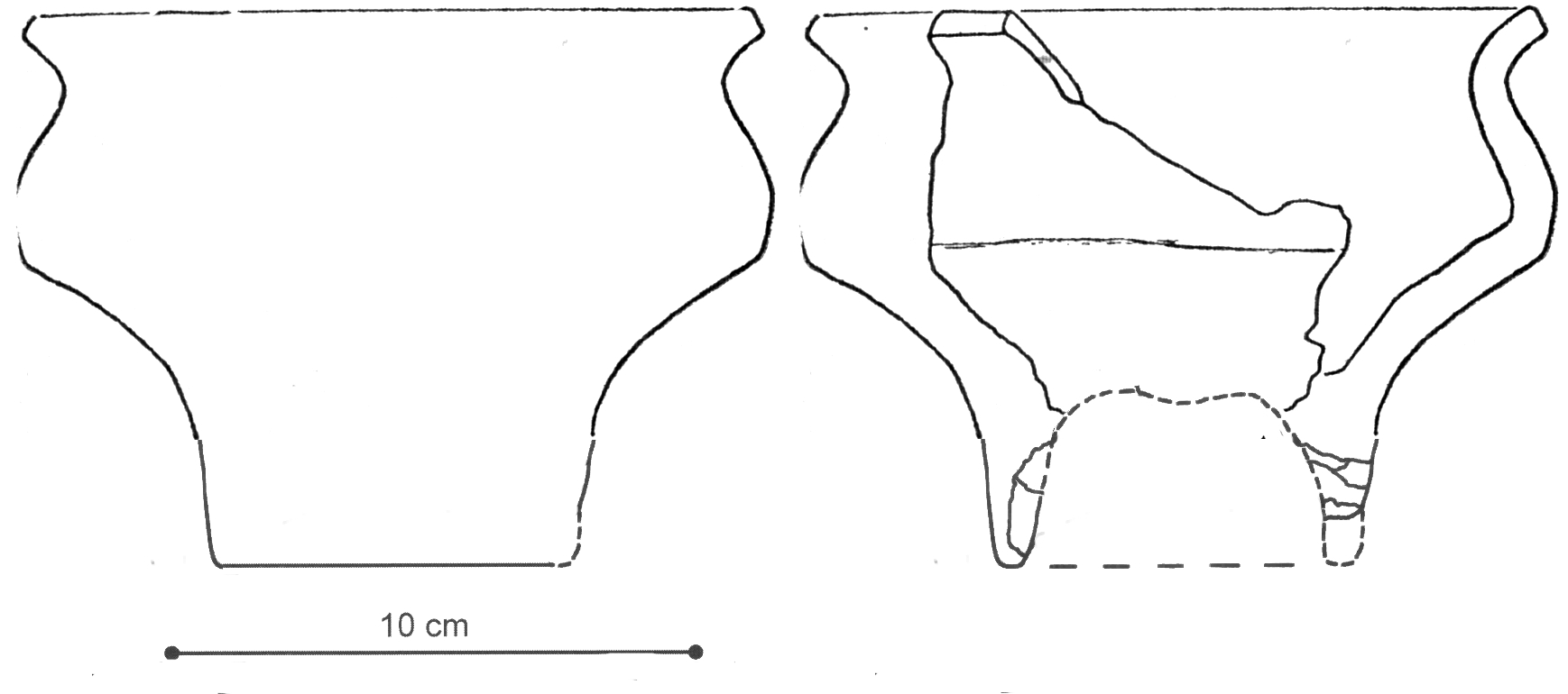 Z kolei, hybryda z pucharem z Czeladzi Wielkiej mojego pomysłu nie bardzo mnie przekonuje, bo to i znacznie przeskalować ostatni zabytek musiałem (prędzej wazą niźli pucharem bym go nazwał), a i datowanie obu sporo się rozmija. Oto i rzeczony potworek (skala właściwa dla nóżki).