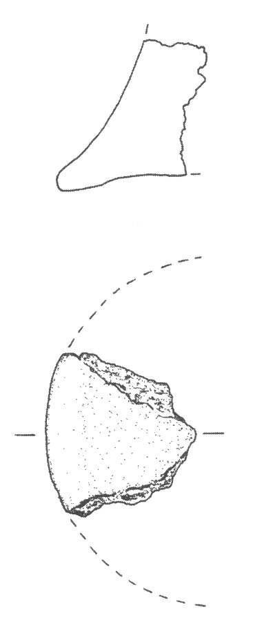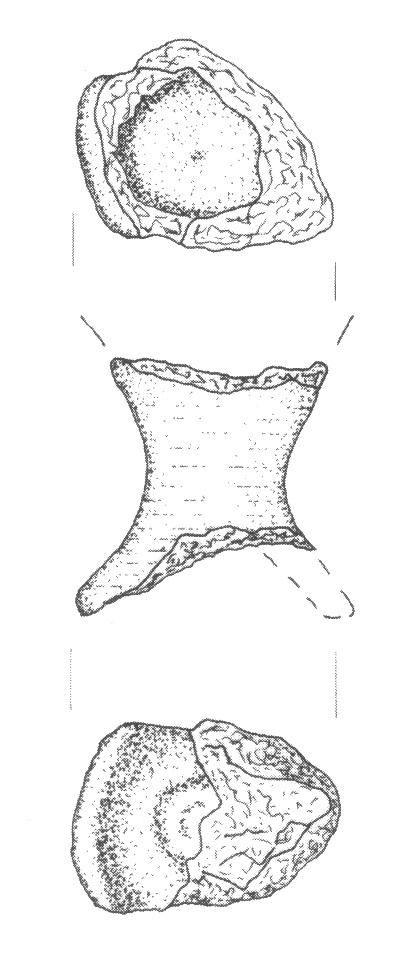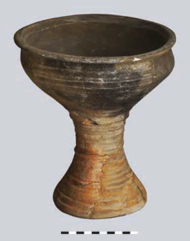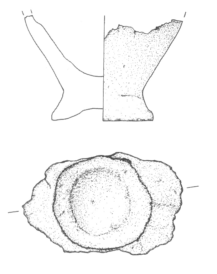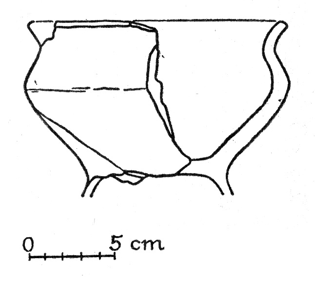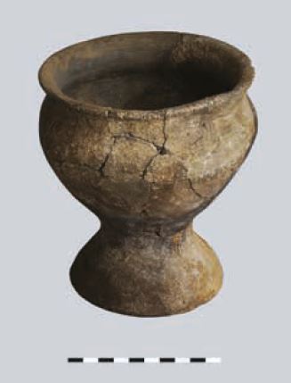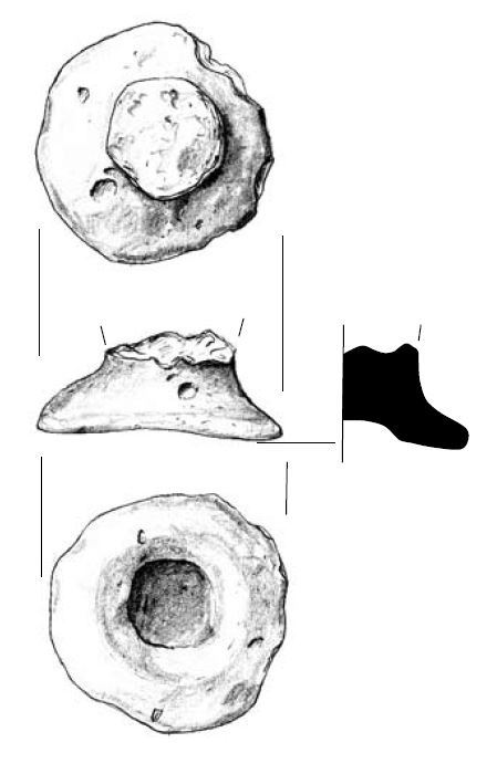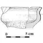 - stan. 5, częściowo obtaczany, fragment przydennej nóżki do wysokości 6 cm, średnica podstawy 11 cm, masa garncarska zawierała drobną domieszkę mineralną;