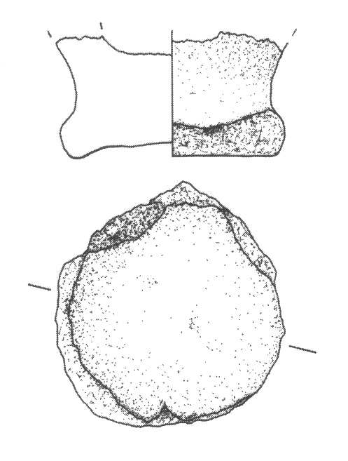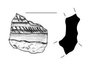 - brak rycin; osada, nóżka znaleziona na powierzchni w sąsiedztwie stanowiska; nóżka większego pucharka (?)