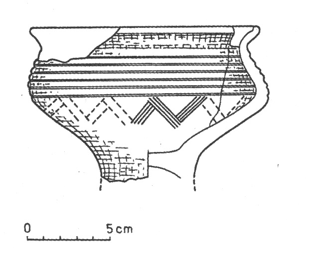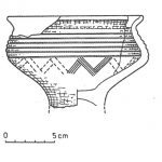- chata I; całkowicie obtaczany; wyraźne analogie do tego pojemnika znajdujemy w południowo-morawskich wyrobach typu blučinskiego oraz – wywodzącej się z tego stylu – tzw. ceramice pomorawskiej z terenów Moraw, Czech i Śląska;