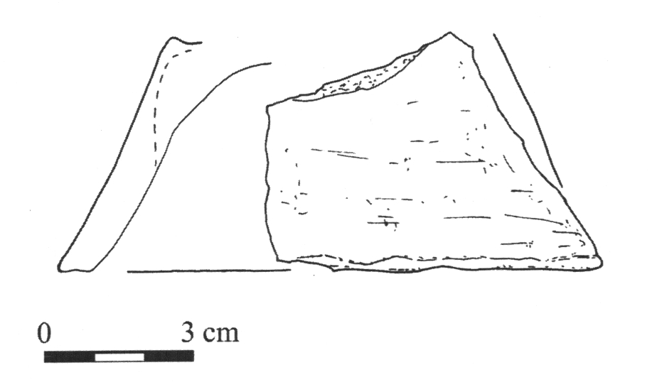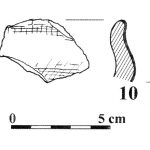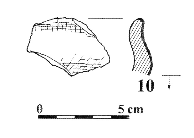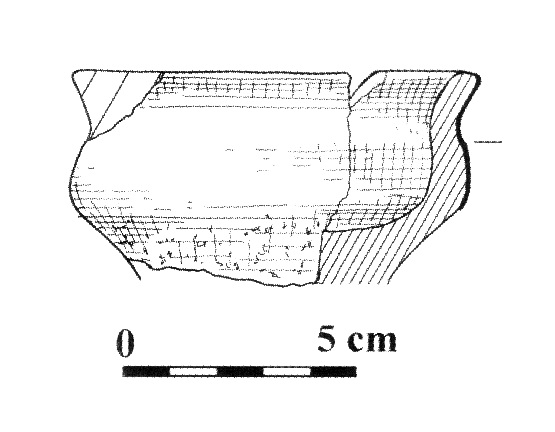 - stan. 1, częściowo obtaczany, fragment przydennej nóżki do wysokości 4,5 cm, średnica podstawy 9 cm, masa garncarska zawierała domieszkę tłusznia o średniej i drobnej granulacji oraz rzadkie , drobne płytki miki;