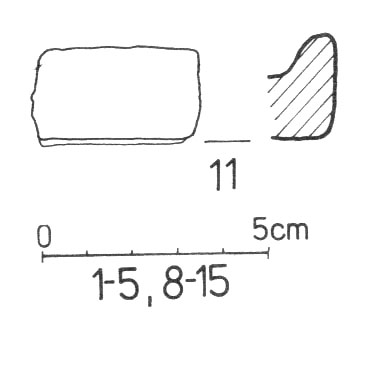 “W wypełniskach 35 obiektów natrafiono na ułamki około 60 ręcznie lepionych talerzy glinianych, w tym 10 zabytków dających się zrekonstruować w całości. Więcej niż 2/3 znalezisk reprezentują talerze o dnach płaskich, ujawnione w 28 jamach, z czego 13 to zespoły wiarygodne (tabela 8; tabl. IV: 5, V: 11, X: 16, XI: 10, XXVI: 4, 7, XXVII: 14, XXXIII: 17 i in.). Pozostałe fragmenty, pochodzące z talerzy o dnach wypukłych, zebrano w 11 jamach, spośród których 5 tworzy zespoły wiarygodne (tabela 8; tabl. XXIV: 17, XXV: 8, XXVII: 8, XLV: 16, LXV: 1, 3, 5, 10, LXVIII: 11 i in.). W zespołach wiarygodnych obydwie odmiany występują zarówno w towarzystwie ceramiki obtaczanej i ornamentowanej, jak i w jamach zawierających wyłącznie naczynia ręcznie lepione, niezdobione (np. ułamki kilku talerzy płaskich w dużym zespole 65 na stan. 9).