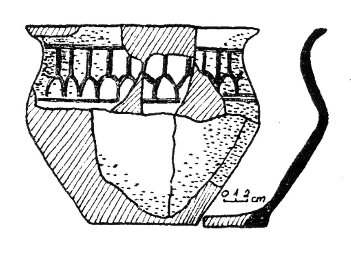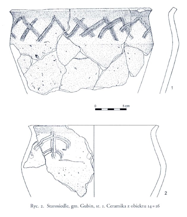 Wśród zabytków z Czeladzi Wielkiej również znalazłem kilka przypominających ten typ naczyń, jedno z wyjątkowo dłuższym wylewem (Lodowski 1972 Ryc. 73:a).
