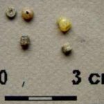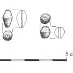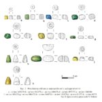 - 17 paciorków z zielonego szkła o średnicy 2-4 mm, wśród z nich 1 wykonany z wyciągniętej rurki wiązany z warsztatami bizantyjskimi (nr inw. 147, 151, 159)