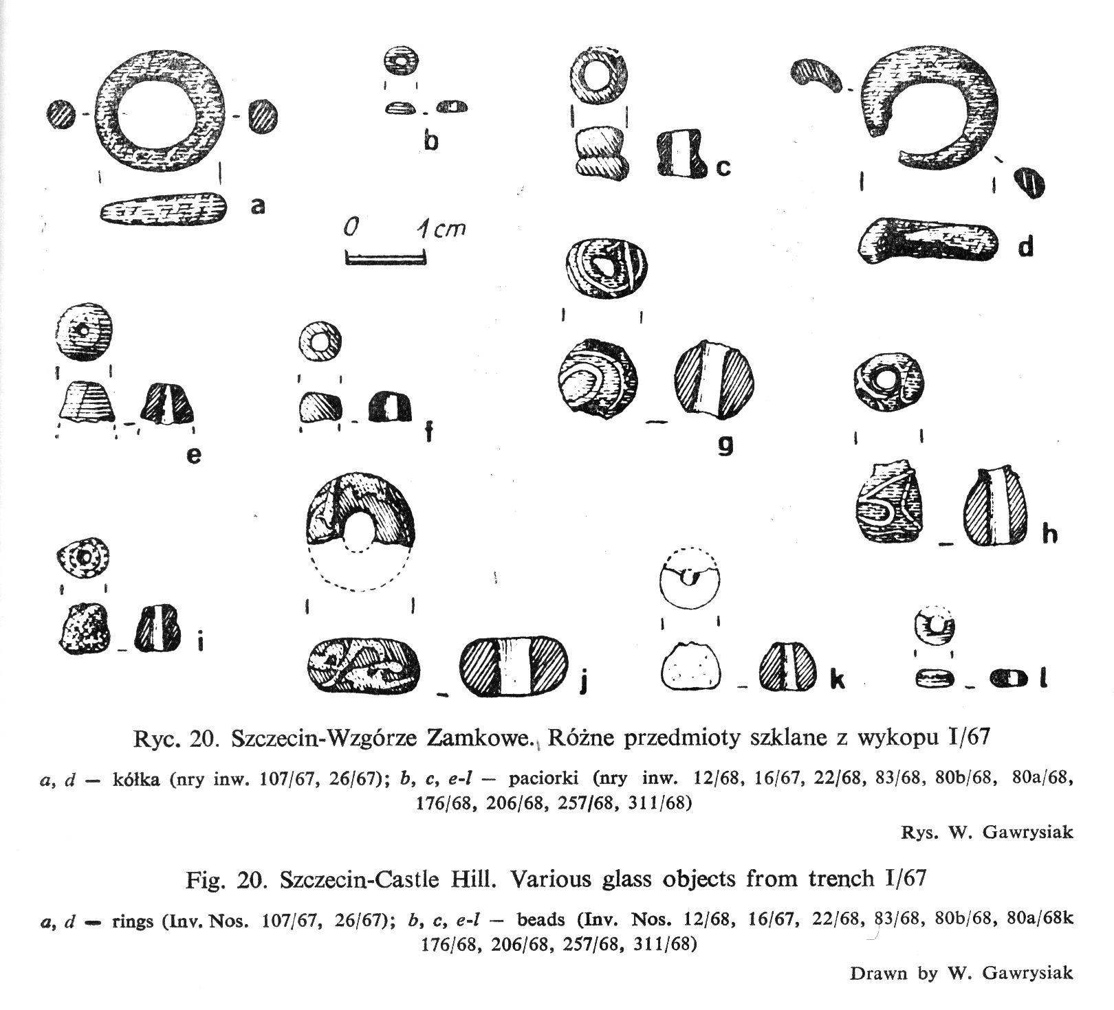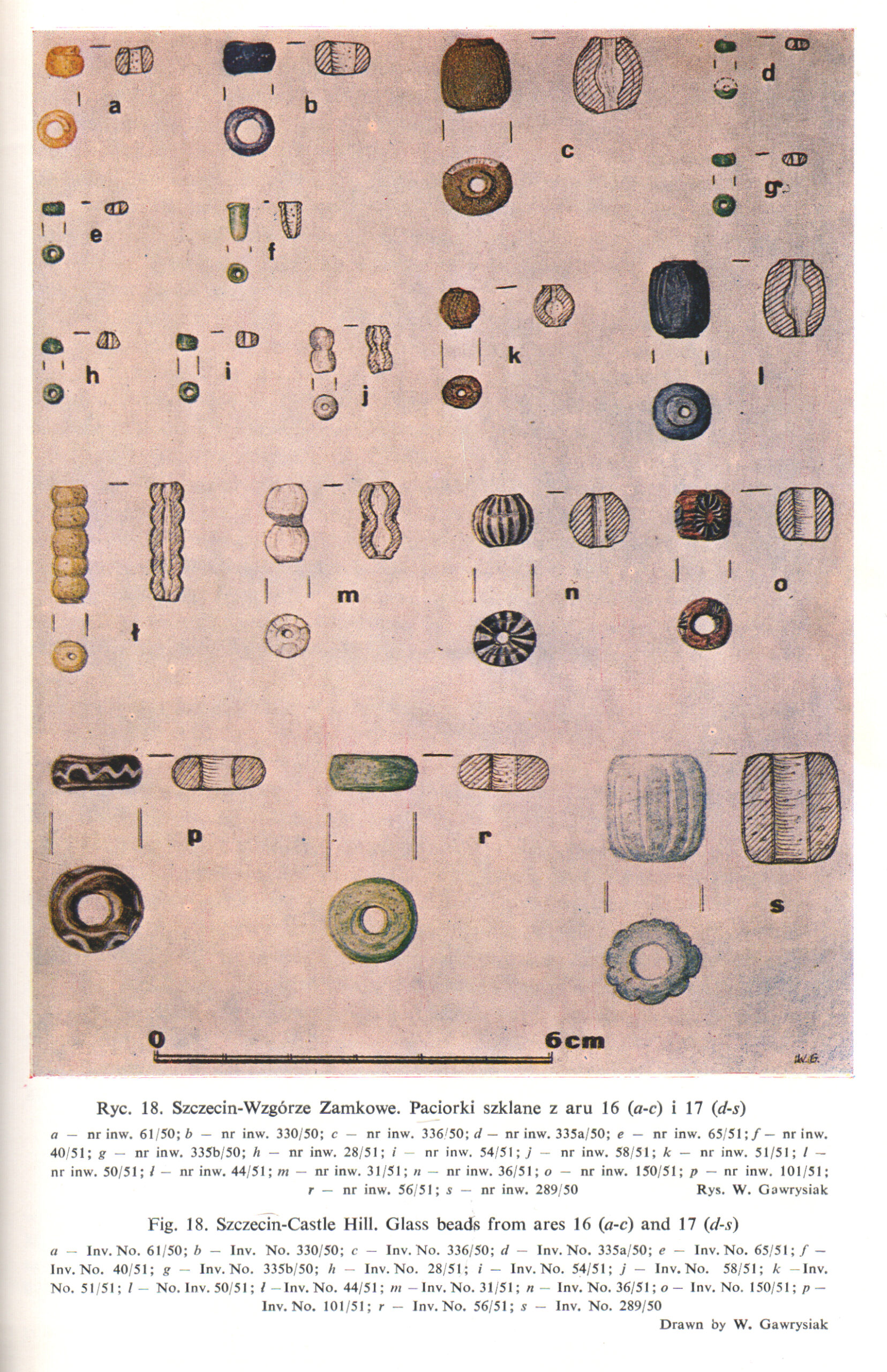 Najmniejsze paciorki ze Szczecina również wykonane były ze szkła żółtego i zielonego (Dekówna 1980 Ryc. 18:d-i; 19:h-j; 20:b, f, l).