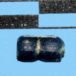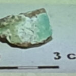 Nadal w tym zestawie brakuje nam zielonych paciorków, ale być może podpowiedź znajdziemy w obiszowskich tyglach. Kolor ten nieidealnie oddaje fotografia, na której udało mi się uchwycić wizerunek warstwy masy szklanej znajdującej się na zewnętrznej powierzchni fragmentu tygla. W dniu 27 listopada 2025 roku w Centrum Kultury i Sportu w Grębocicach mieliśmy okazję podziwiać go na wyświetlanej przez Sylwię Siemianowską prezentacji podczas wykładu zatytułowanego Ceramika i szkło w Kraju Dziadoszan. A to nie wszystko…