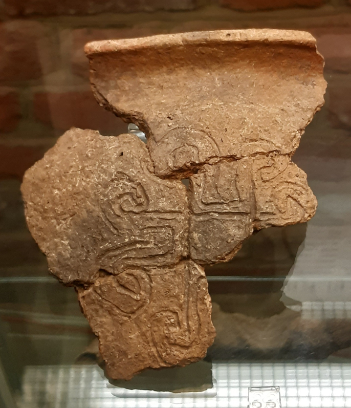 Pośród różnych symboli nanoszonych na naczynia ceramiczne różne formy krzyża przyciągają badaczy w szczególny sposób (np. Lisowska 2024). Nie inaczej jest z krzyżem wolutowym z naczynia z Czeladzi Wielkiej, interpretowanym jako symbol pierwszych chrześcijan (wykłady Michała Parczewskiego pt. ‘Pierwsi chrześcijanie na północ od Karpat i Sudetów’ z 2016 roku). Można postawić pytanie, czy w motywie krzyża wolutowego same woluty też miały swoje symboliczno-magiczne znaczenie?