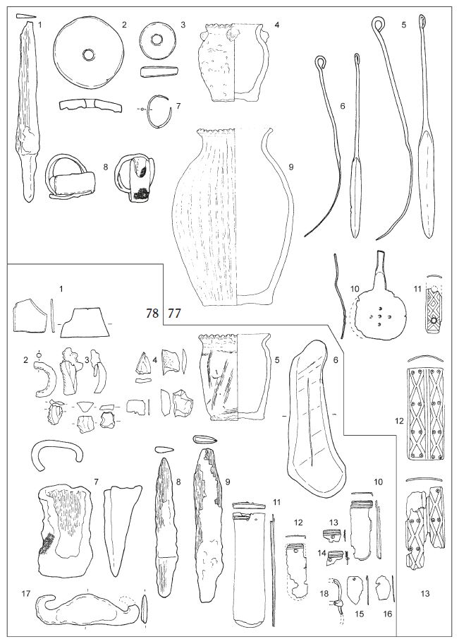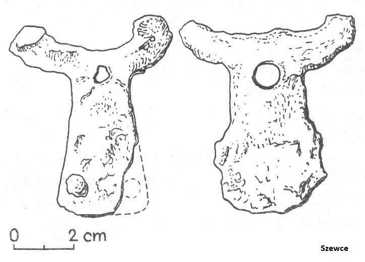 - zabytek z Żukowic (Parczewski 1989 Tabl. XL:14) na podstawie prostokątnej rękojeści oraz krótkiego ostrza został zidentyfikowany jako niedokończony nóż wolutowy (informacja ustna od Jakuba Karola Pawlickiego).