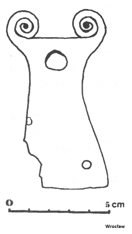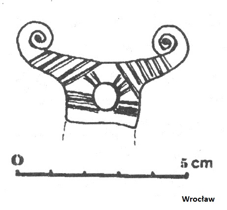 - znaleziska “dwuwolutowe”, czyli zakończone dwiema parami wolutów: Gilów (Jaworski 2005 s. 82-83);