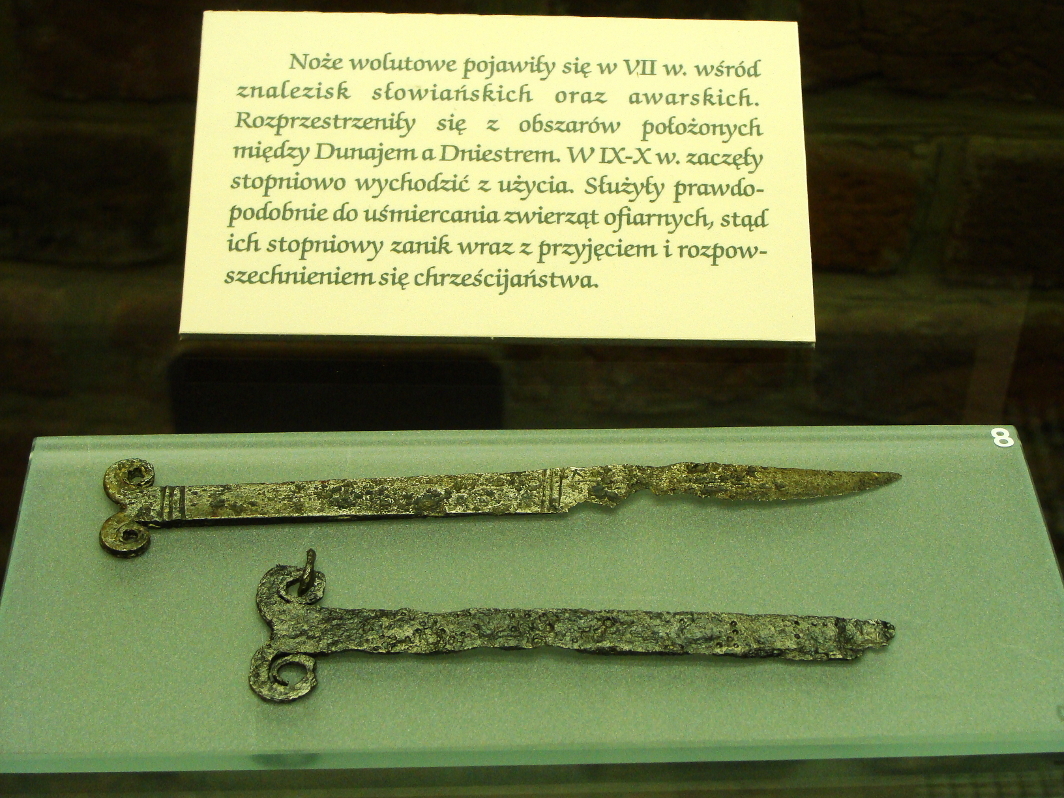 Szymański Wojciech ‘Noże z rękojeściami zakończonymi wolutami – zagadkowe komponenty kultury słowiańskiej i awarskiej’ [w:] ‘Studia nad etnogenezą Słowian i kulturą Europy wczesnośredniowiecznej’, t. II, s. 141-159, Wrocław-Warszawa-Kraków-Gdańsk-Łódź 1988;