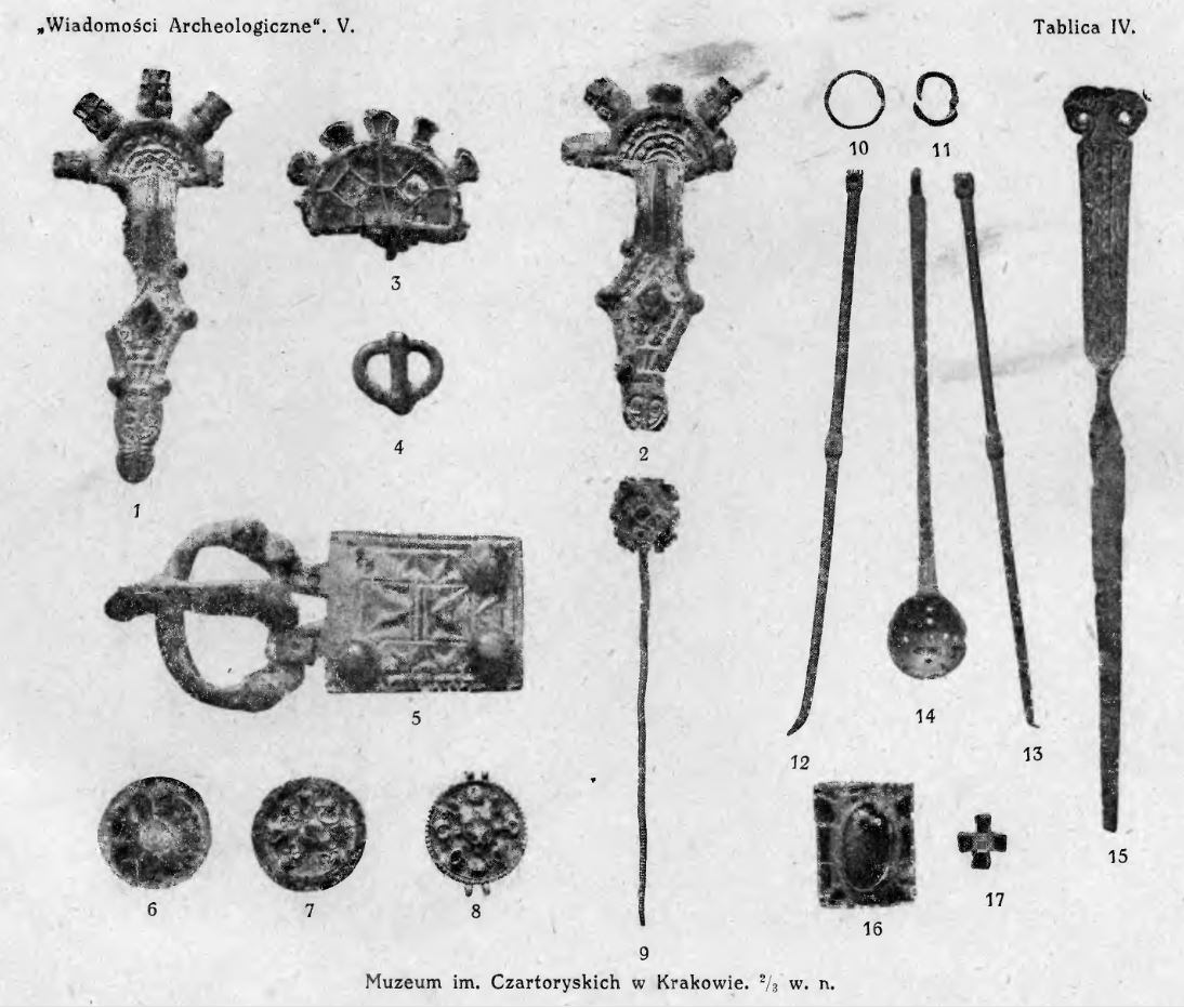 Żurowski Józef ‘Zabytki merowingskie w Muzeum książąt Czartoryskich w Krakowie’ [w:] ‘Wiadomości Archeologiczne’, t. V, zeszyt 3-4, s. 157-184, Warszawa 1920.